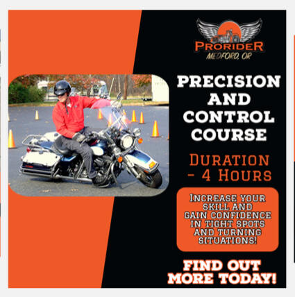 • Learn and practice slow-speed techniques that are perfect for those pesky parking lots and tight turnarounds (...and when you want to impress your friends or passenger).Intended Audience:This course is intended for experienced motorcycle riders, who have a firm grasp of the basic skills of operating a motorcycle, but desire to become a better, safer, and more confident rider. This is a challenging course, so riders must have physical stamina to withstand a full day on the range.Prerequisites:• Motorcycle endorsement on license